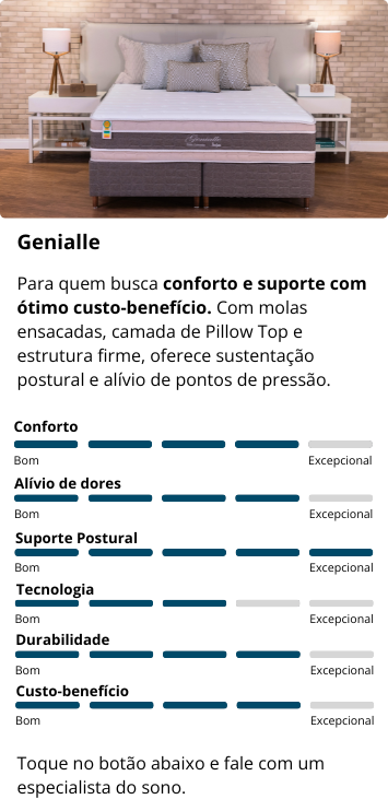 Com a tecnologia de molas ensacadas individualmente, você não sente o movimento do parceiro.